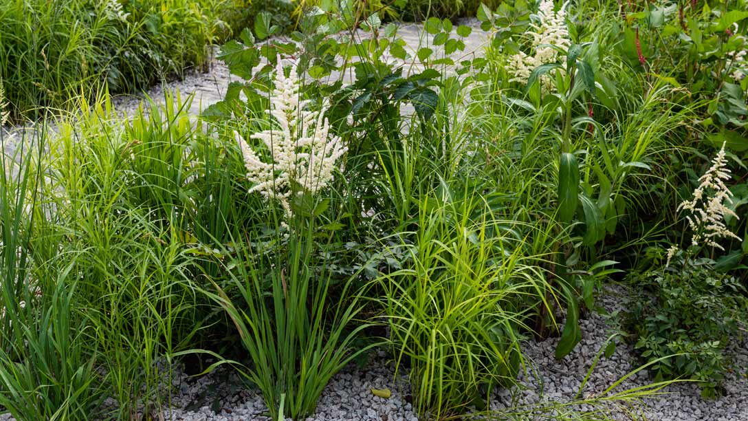 - Three beautiful Betula nigra, also known as river birch, punctuate the perimeter of the show garden