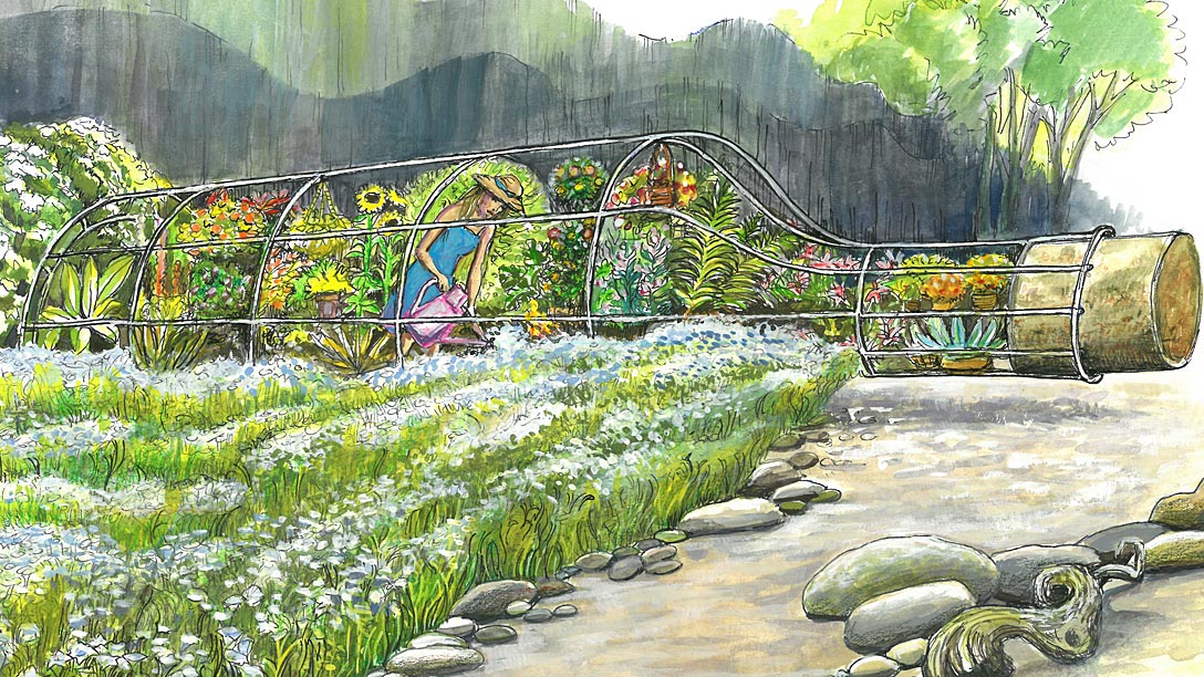 Message in a Bottle is a conceptual garden depicting a large bottle floating towards the shore. Inside the bottle beautiful planting symbolises the positive message that we can all help to prevent plastic pollution within our gardens, alongside our canals and rivers and within our daily lives.