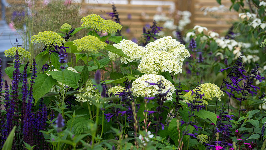 - Reliable varieties of favourite garden plants, such as Salvia ‘Amistad’ and Geranium ‘Rozanne’ provide long lasting colour