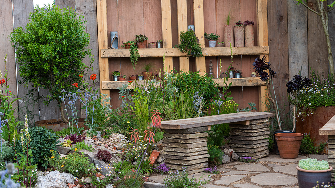 This is an unconventional, almost ‘anti’ Show Garden in that it uses all the waste products usually taken out of a garden. Concrete, old paving, poor soil, broken brickwork and hardcore: the most unlikely, but perhaps more realistic, of starts for a beautiful, colourful, thriving garden that’s a joy to be in. It’s inspired by the experimental technique of growing into brick dust trialled by the team at the University of Sheffield and plantsman Peter Korn, along with the theory and practice pioneered by the late Beth Chatto.