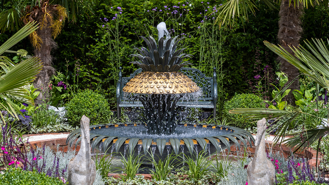 A series of water features, represent the famous Charleston waterfront fountain and are based on the pineapple which is a symbol of welcome and hospitality in the city.