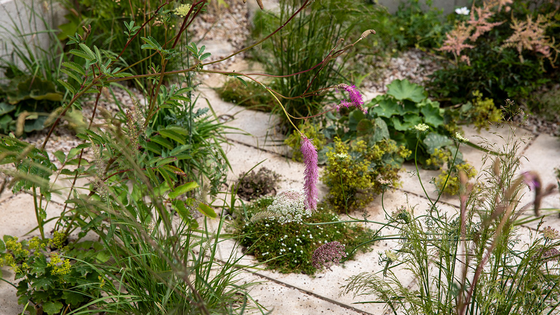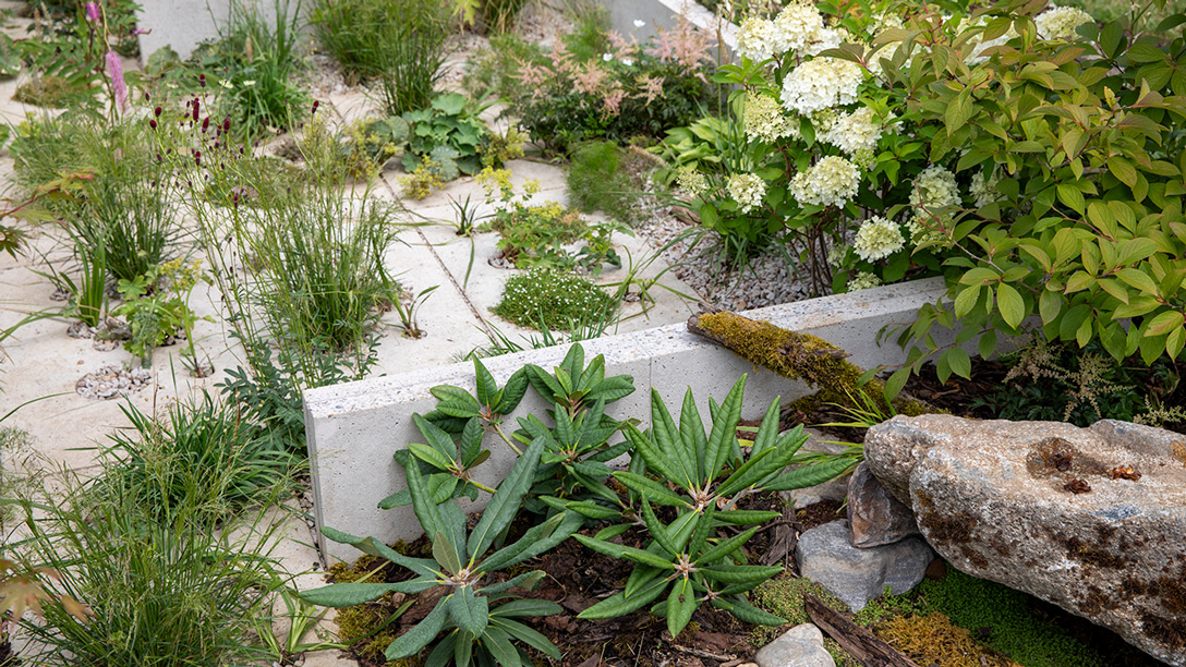 Plants featured in the garden are native to Korea, or commonly found in the woodland of the area such as Cornus kousa, Rhododendron spp, Sorbaria sorbifolia and Astilbe rubra.
