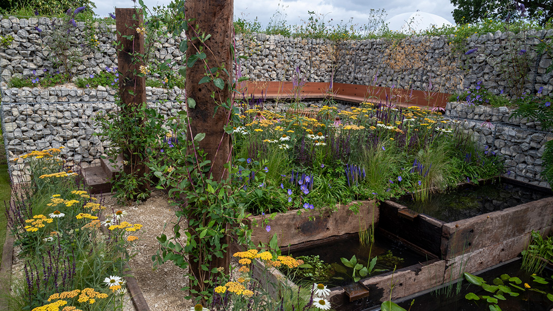 Taking inspiration from inner city green developments along disused urban railways such as the High Line in New York and Parkland Walk in Highgate, London, the garden distils ideas from these enormous projects into a space where schools or home gardeners on a budget could replicate something similar using unwanted and reclaimed materials