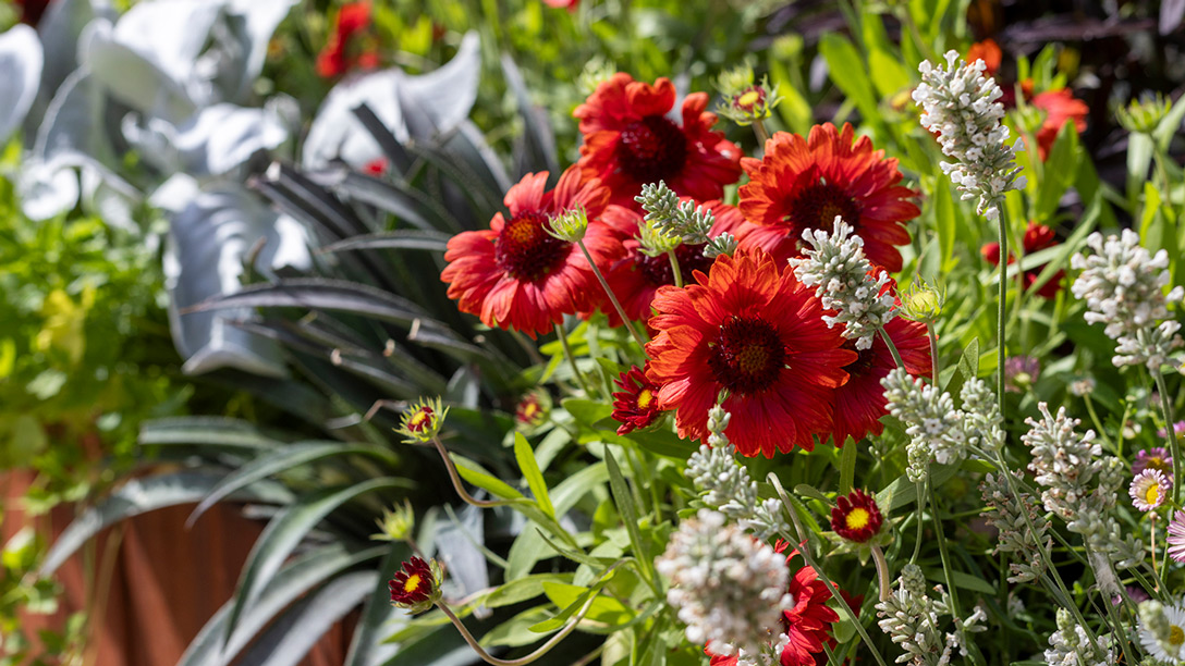 Designed by BBC Morning Live’s resident gardener Mark Lane, the garden contains tips on cost-effective ways to garden using household goods and equipment. The design makes the most of inexpensive and readily-available drought-tolerant plants such as Eryngium bourgatii Picos Amethyst, Armeria maritima ‘Splendens’ and Erigeron karvinskianus. Pops of colour are provided by plants such as Agapanthus africanus ‘Blue’, Echinacea ‘Cheyenne Spirit’ and Astrantia major ‘Sparkling Stars Red’.