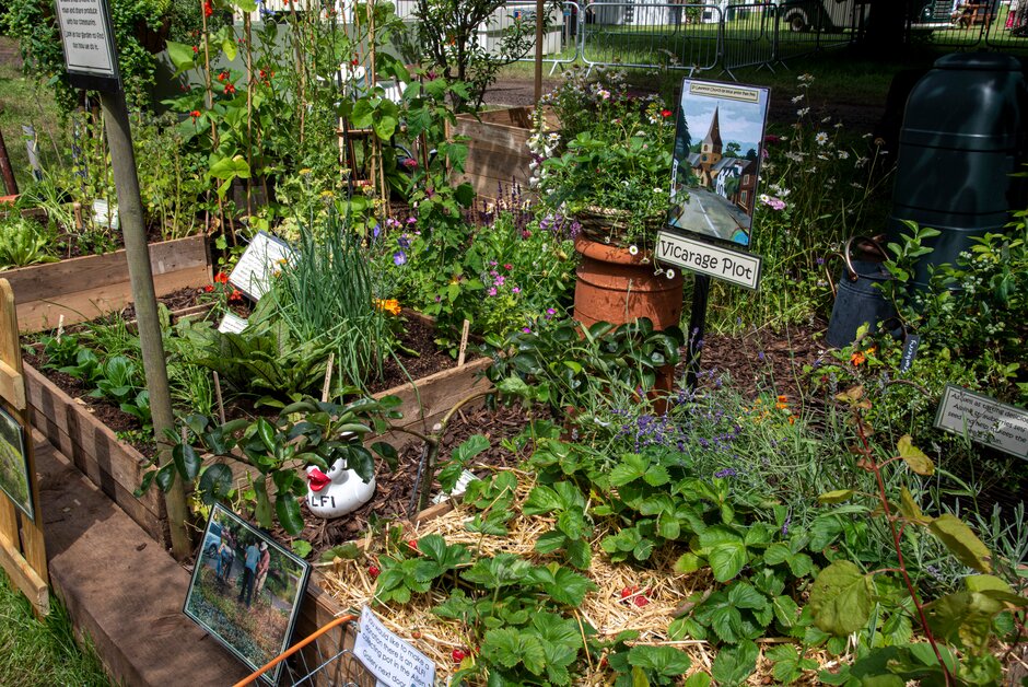 There are 13 other communities and allotmenteers hoping to inspire and educate through their plots of raised beds. as well as a pond dipping and wildlife area, advice on coping with flood and drought, edible living wall, companion planting and inspiration boards.