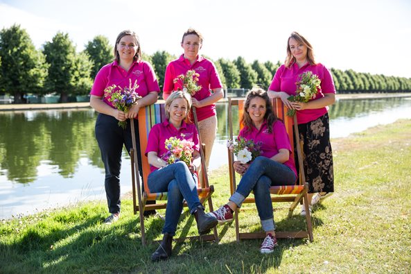 This year at Hampton Court we’re very excited to return with our Flower School, which aims to educate visitors about us and encourage more people to support their local flower farmer. Outside the marquee, we’ve created a mini flower farm of growers’ favourite summer cut flowers ready for picking. There’s also two demonstrations each day – one by a celebrity florist and the other by one of our farmer-florists. Our demos show how to make a variety of beautiful arrangements, using sustainable floristry techniques. We’re also running quick workshops to teach our visitors how to make buttonholes and mini posy corsages and we’re hosting a new ‘Flower Farmers’ Question Time’ segment.
