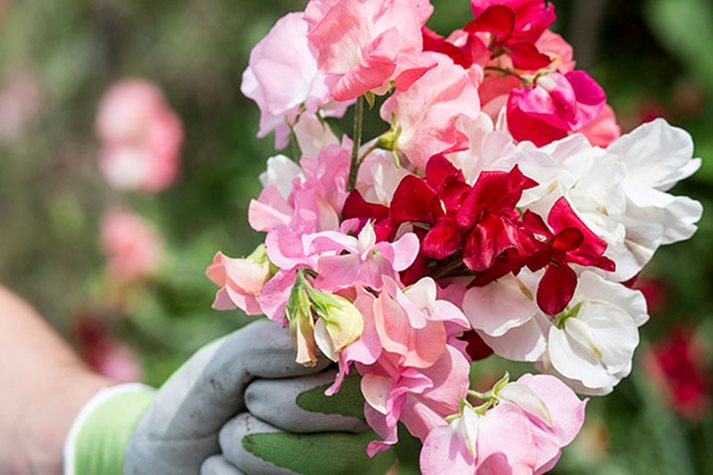 - Sweet peas – can be flowering from May to September outside in the UK, if the weather is kind. They’re cheap, pretty easy going, and the scent is unbeatable both in the garden and in the house.