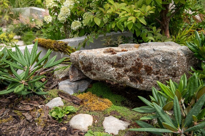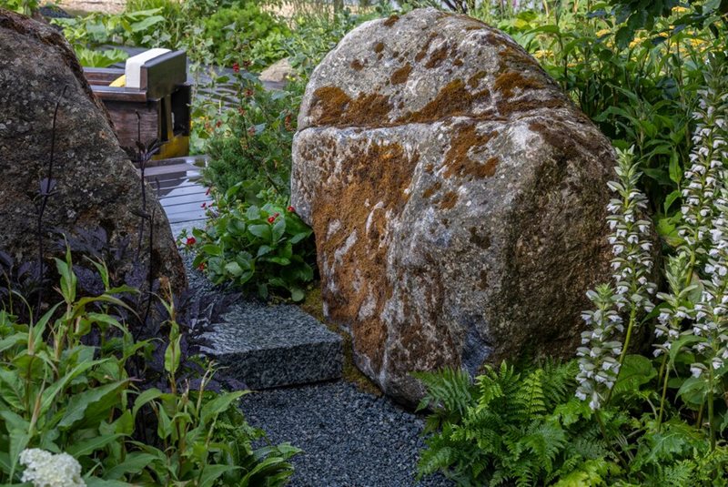 Use them to create edges, place them on their edge to make interesting paths, stand them upright to make an entrance, as seen in Hurtigruten: The Relation-Ship Garden, designed by Max Parker-Smith, “The Scottish granite boulders gave us lots of opportunities and they’re a really fun focal point for kids too. Some of these are recycled from Jilayne Rickard’s Flora and Fauna garden at Chelsea this year. The largest one has been affectionately named Simba from Disney’s The Lion King,” says Max.
