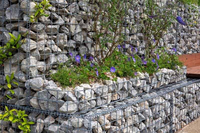 This garden also uses gabions to create levels and are a great way of building simple walls. They can be filled with all manner of materials, or even with waste from the garden as seen in the Plastic Fantastic garden and they make perfect homes for creatures too.
