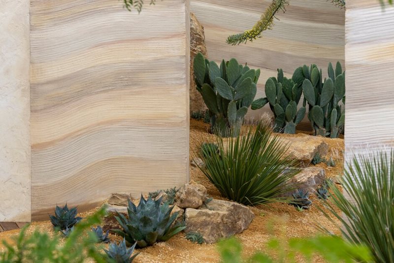 Falling, rippling and still; there is an abundance of water in the Show Gardens, with one garden making a particular splash – America’s Wild, presented by Trailfinders and Visit the USA. The three designers – Emily, Imogen and Jude have created a masterpiece; a waterfall spectacle with a contemporary twist. “We wanted to create a waterfall that seamlessly blended natural stone with a conceptual rendered wall. We think this mix of naturalistic and conceptual is the future of garden design.”