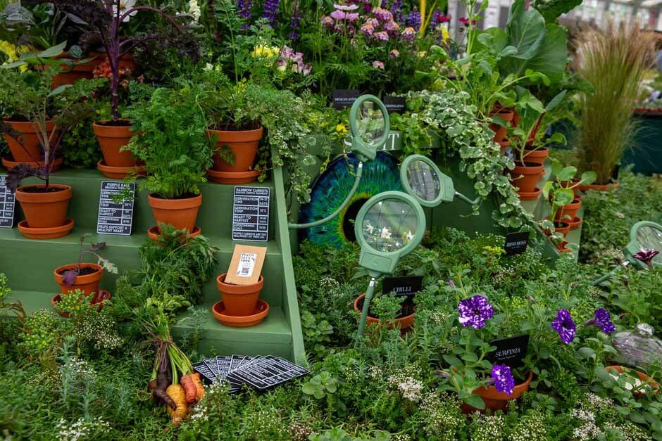 Lee Norbury of Plants Let’s Grow has created a fun, interactive display for his first show exhibit, which takes a sensory theme. Each of the five senses is illustrated with ceramic glow-in-the-dark artwork and a plant theatre showing the stages of growth, from seed and seedling to fully grown plant. Every plant has a Top Trumps style card with statistics on germination and harvesting as well as an ‘awesomeness’ rating. There are also magnifying glasses to see the plants up close, homemade candles scented with the various plant on the display so visitors can test the olfactory skills and an iPad playing a video of the history of the nursery.