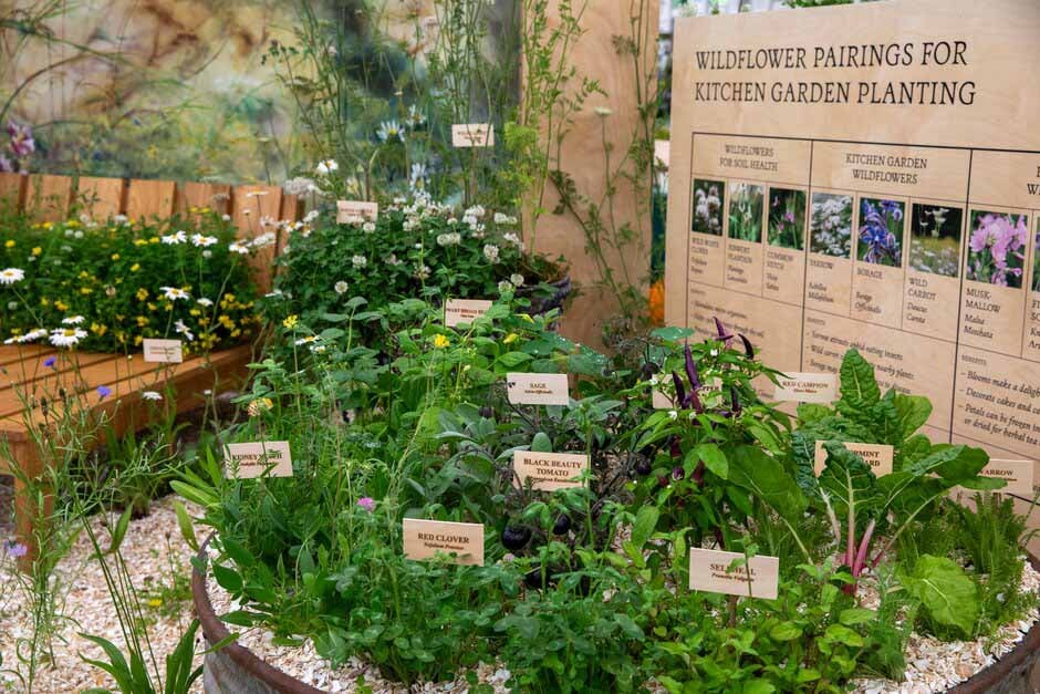 “Many are edible, such as red campion (Silene dioica) and selfheal (Prunella vulgaris) you can treat the young leaves like spinach. Kidney vetch (Anthyllis vulneraria) and salad burnet (Sanguisorba minor) you can harvest the young leaves and use in a salad. Cornflower and musk mallow have edible flowers you can put on cakes or drinks, borage flowers look lovely in a gin and tonic!”