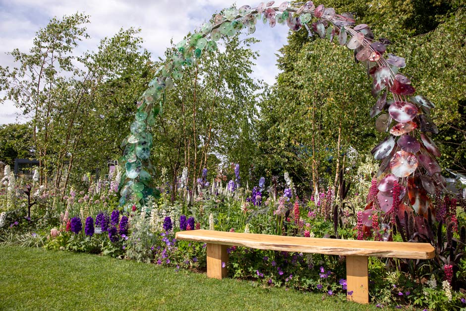 RHS Chelsea Flower Show in May, the garden is packed with native and British grown plants alongside beehives to increase biodiversity.