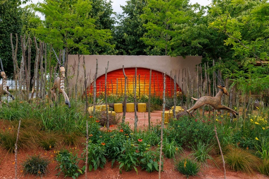Celebrating the 25th anniversary of Disney’s The Lion King in London’s West End, Juliet Sargeant is drawing inspiration from the award-winning production’s bright colours and the African savannah for The Lion King Anniversary Garden with dusty red soil planted with swathes of resilient grasses and vibrant, drought tolerant flowers.