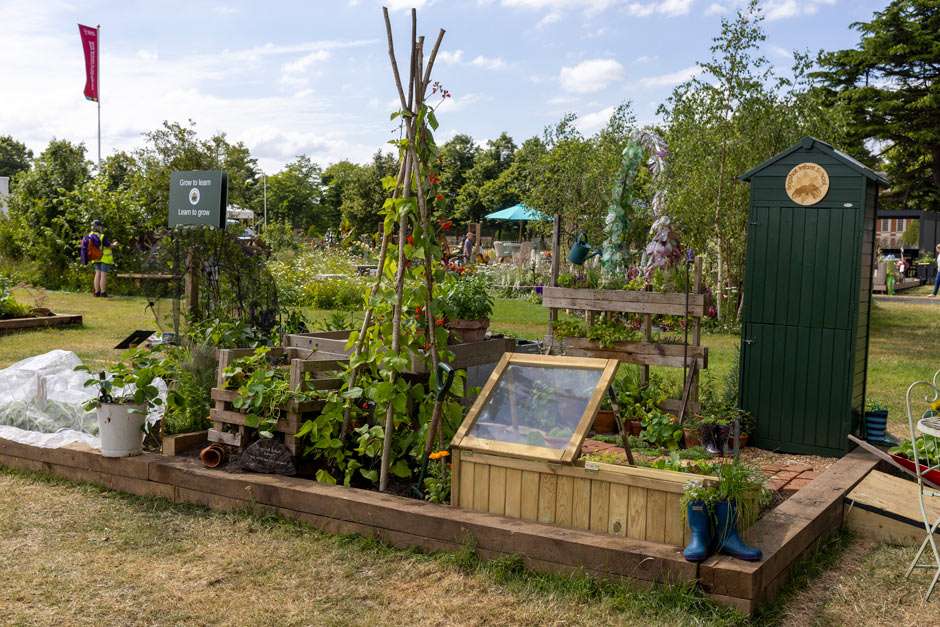 Timber was widely used across the Show in brilliant and creative fashion. Edging, seats and walkways were all made from warm-toned wood. This included many recycled elements, such as using scaffold planks to make tables and hand-made chairs.