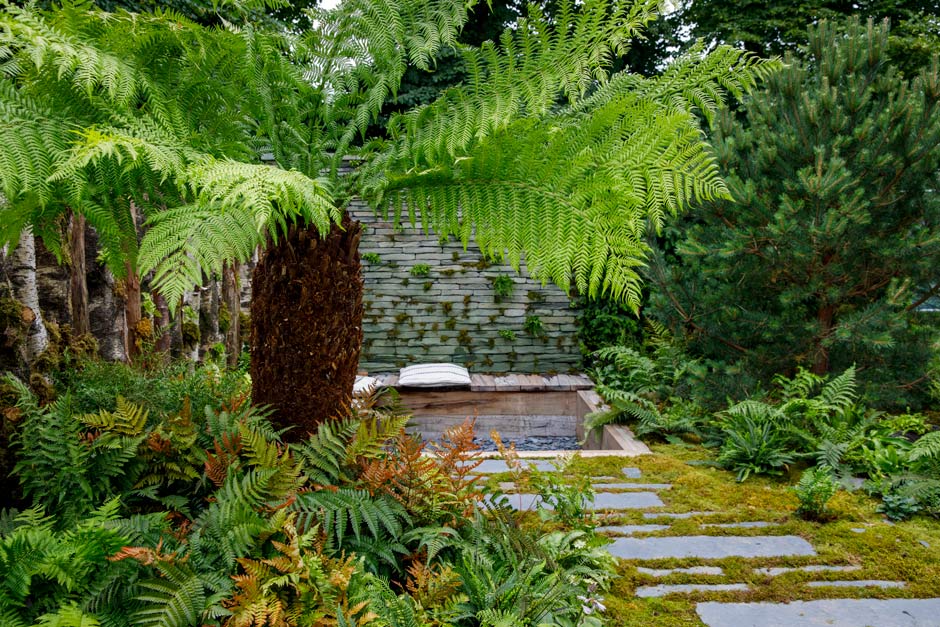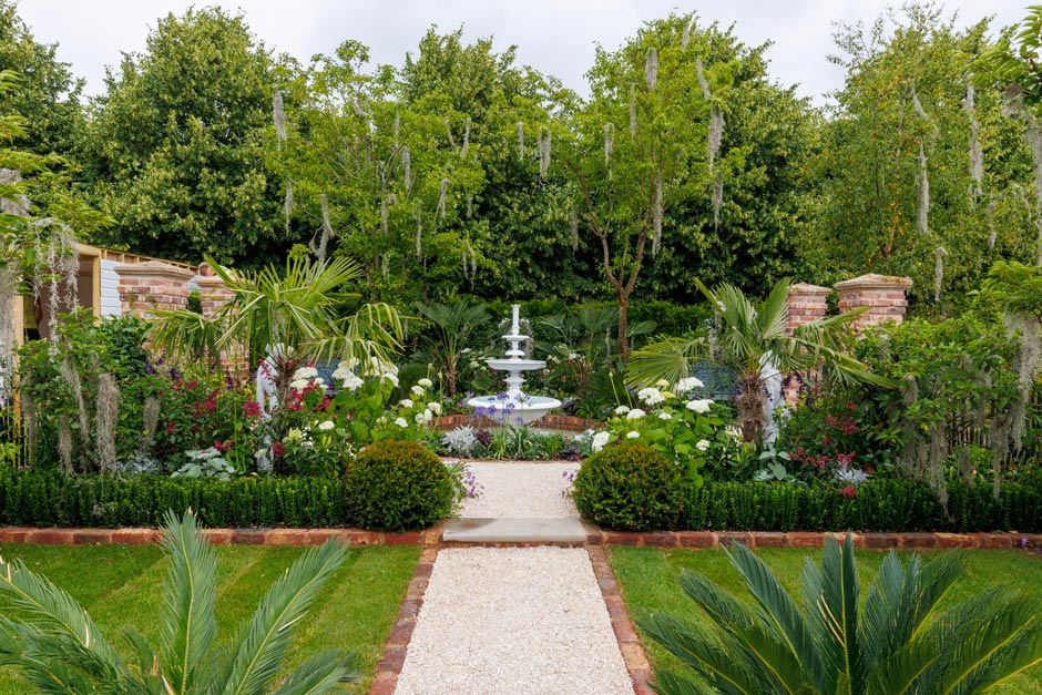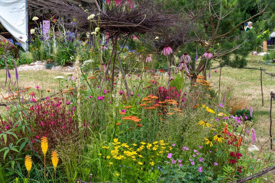 This pretty garden proved to be the perfect antidote to a hot week at RHS Hampton Court. With a romantic, birdcage gazebo, central water feature and pastel shades of planting, the public loved it.