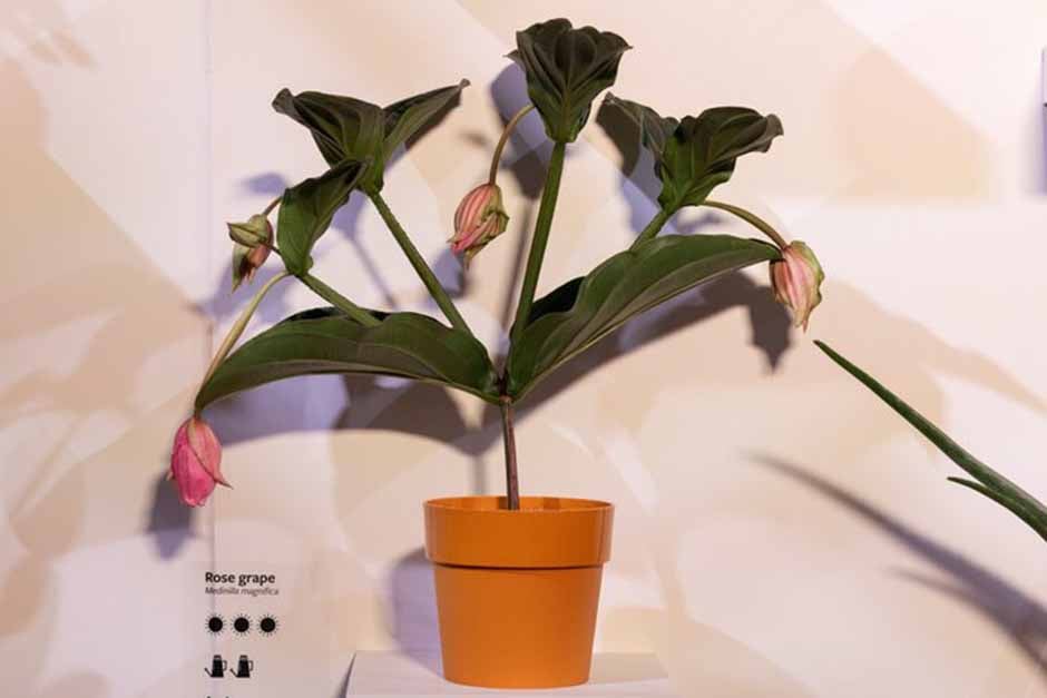 The outside in trend was everywhere at the show, Monstera and Transedcantia featuring equally as houseplants and in borders. Traditional reliable houseplants, such as the three celebrated on the Beginner Buddies content cube – Sansevieria (snake plant), Chlorophytum (spider plant) and Epipremnum (pathos) – there were also more challenging plants to try such as, the rose grape, Medinilla magnifica.