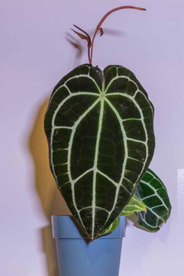 Anthurium crystallinum AGM in bright, indirect light, using an acidic potting mix of two parts ericaceous peat-free compost, one part perlite and one part orchid bark. Sit them on a tray of moist pebbles to keep the humidity high.