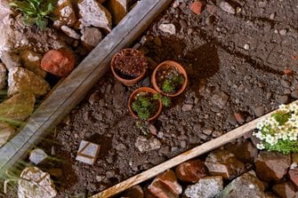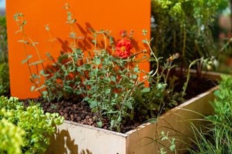 - Red brick rubble and green roof substrate with poor soil – to show you don’t need perfect soil to grow a garden.