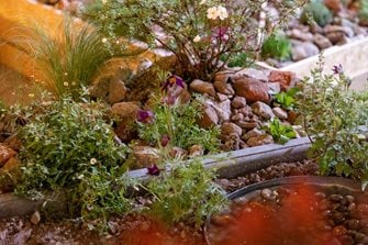 Amanda Grimes’ Punk Rockery Garden at RHS Hampton Court Palace Garden Festival 2021 was an unconventional, almost ‘anti’ Show Garden. It re-used materials usually bound for a skip: lumps of concrete, old paving, scaffold boards, rubble and poor soil. Then added tough, tolerant but truly beautiful plants, creating a show-stopping garden that was colourful, engaging and buzzing with life.