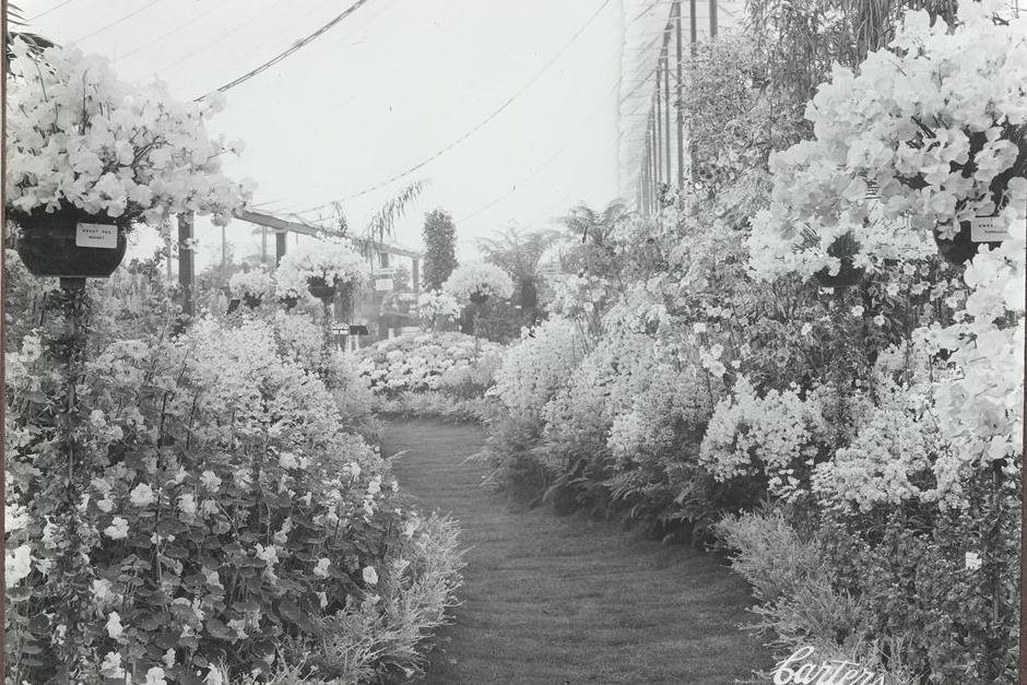 The image in the banner is a glass lantern slide of Carters’ exhibit at the Chelsea Flower Show. Reginald A. Malby and Company / RHS Lindley Collections: Find more inspiration with the RHS Digital Collections.