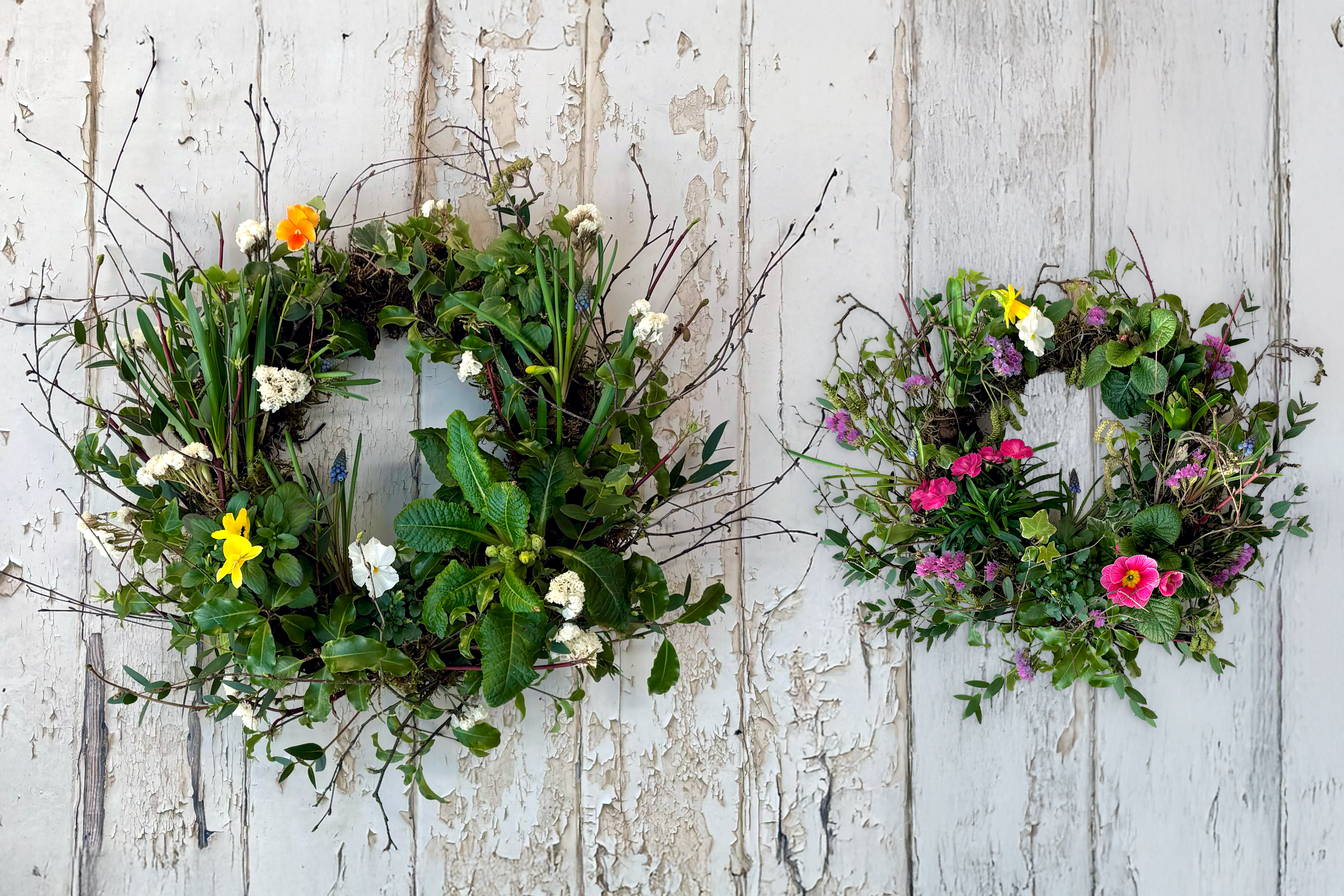 Each adult will get the opportunity to create a living spring wreath, and your accompanied young person (a maximum of two young people aged 12–17 years per adult) will create similar, smaller versions.
