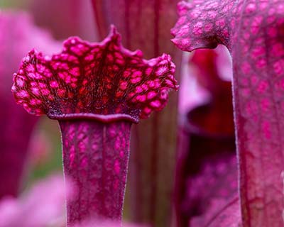 Sarracenia, commonly know as North American pitcher plants, are strikingly architectural herbaceous perennials found in the Southern states of the USA