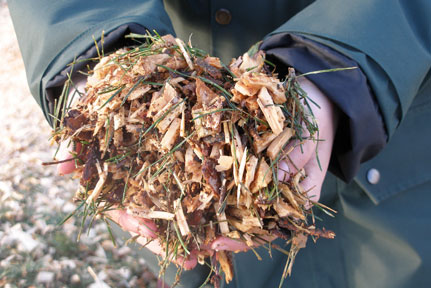 Brown – mainly dry woody waste, such as prunings and hedge-trimmings (shredded, chipped or chopped up), and other dried materials such as dead stems and straw, as well as torn-up or shredded paper and cardboard. These are rich in carbon