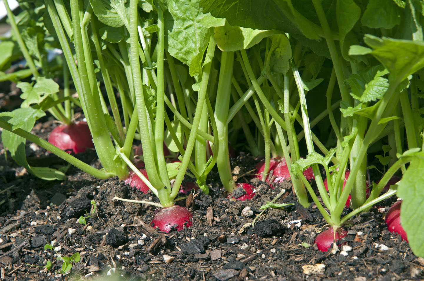 Weed regularly, so plants don’t have to compete for light and moisture – radishes don't like to be crowded. Hoe between rows but weed by hand close to the radishes, as a hoe could easily damage the roots.
