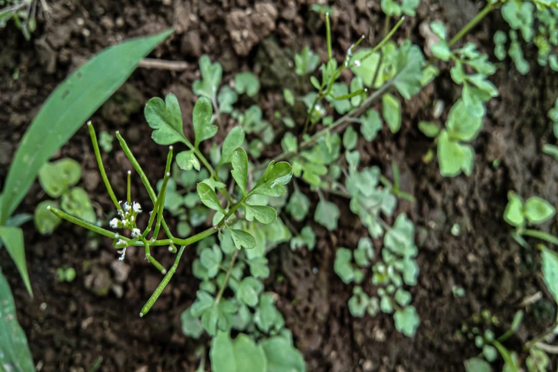 Another common name for bittercress is ‘ping weed’, referring to how ripe seeds are propelled (pinged) away from the plant