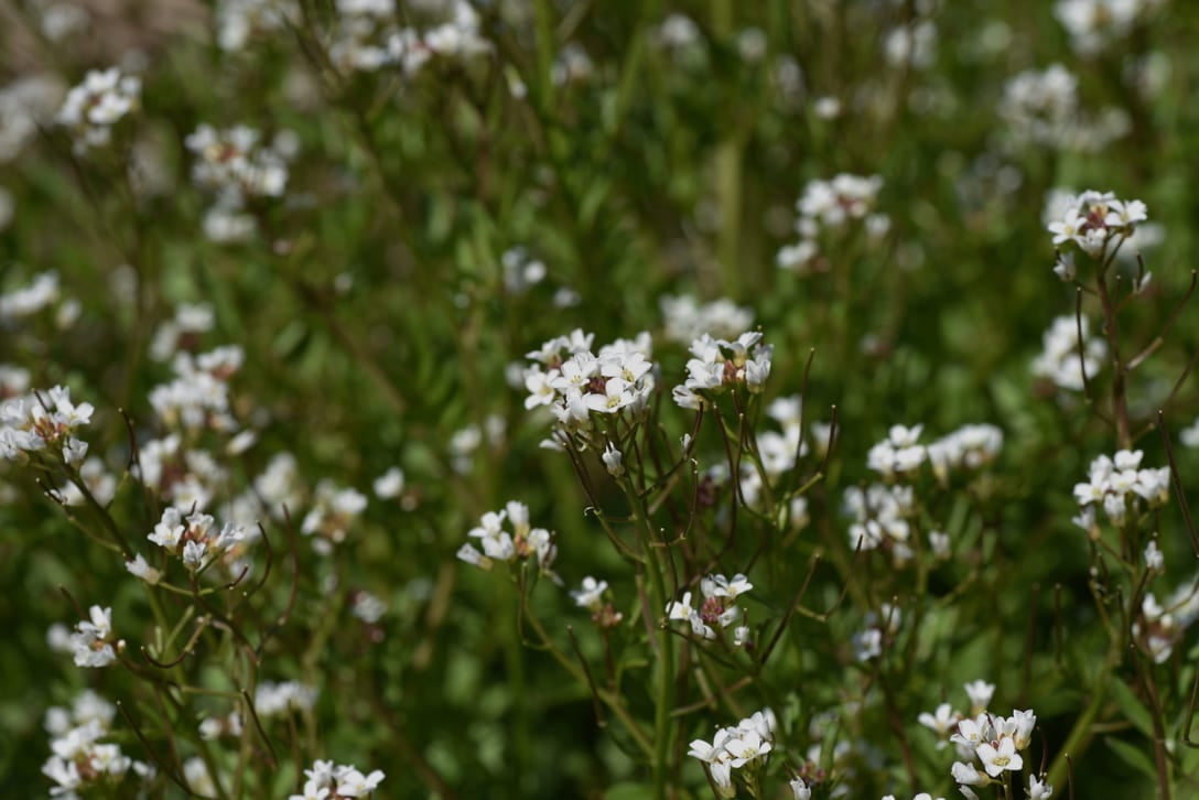 - Flowers are small and white, each with four petals. They usually bloom between spring and autumn, but both bittercresses are hardy so can grow and flower during mild spells in winter