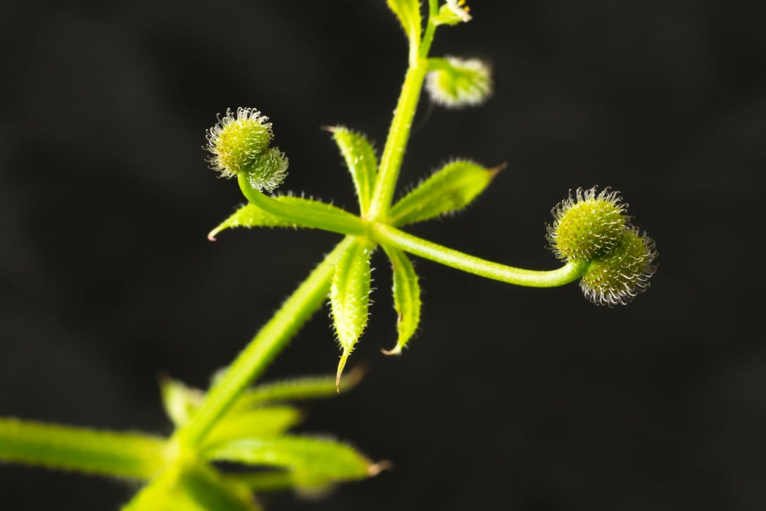 Although cleavers aren’t easily confused with other weeds, its look very different from mature plants, with two large, flat, oval-shaped seed leaves.