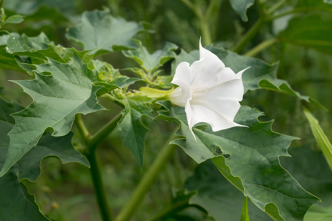 Other common names include Jamestown weed, jimson weed, devil’s apple, devil’s trumpet and devil’s snare