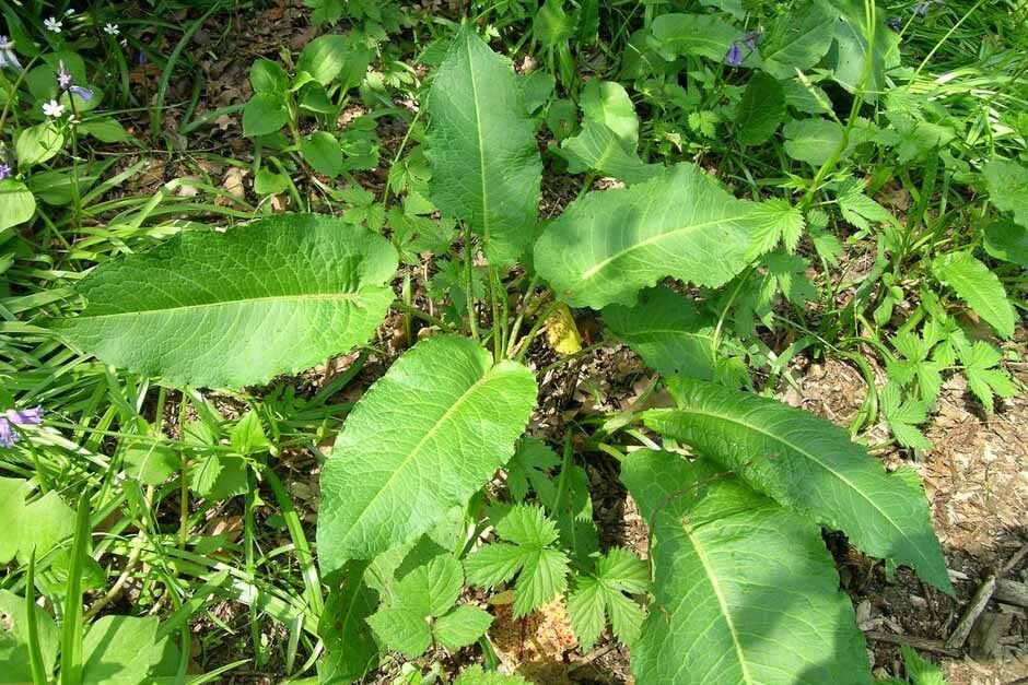 Broad-leaved dock’s botanical name is Rumex obtusifolius; it is also known as bitter dock, butter dock, kettle dock and cushy-cows