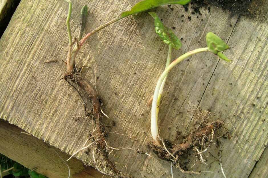 often emerge in spring or early autumn. Young plants quickly develop a and can regenerate from sections of root, so may be spread unintentionally by gardeners roots or chopping them up when digging. However, sections of root deeper than about 12cm (5in) are much less likely to regrow.