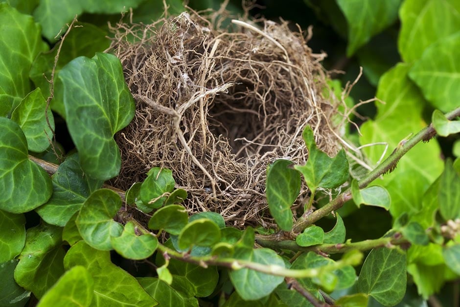 Check for nesting birds before you do any work to control or remove ivy. It is an offence under the Wildlife & Countryside Act 1981 to damage or destroy the nest of any wild bird while it is in use or being built. Nesting season generally lasts from March to August, but it may last longer for certain birds or those with multiple broods, so always check before starting.